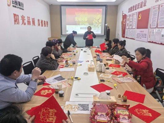 1月15日下午,日照银行济南长清支行热闹非凡,一场以新春送福“福文化”为主题的手工拓印活动温馨开启,12位客户现场参与。